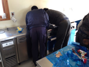厨房機器の取り付け工事を行っています。