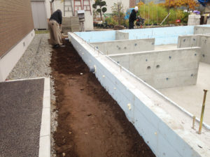 基礎断熱工法は、布基礎の外側と内側に断熱材を打ち込みます。