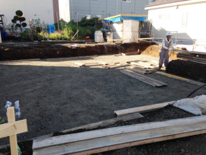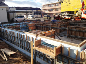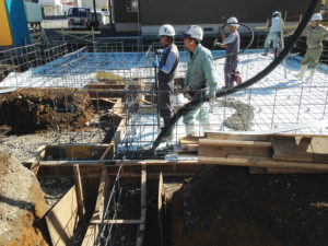 基礎工事が着工いたしまして、コンクリートの枠材を組み立てた後、