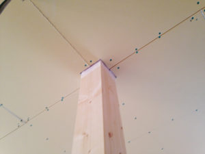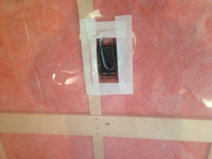 天井の防湿シートも柱周りで切れてしまうので、そこもしっかりテーピングします。