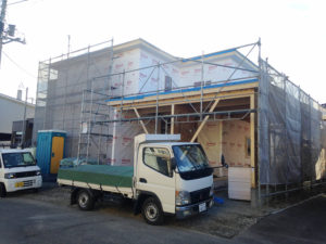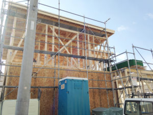 外部では、外壁材の樹脂サイディングを張る前に下地を施します。