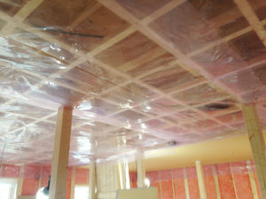 天井には隙間なく防湿気密シートを貼り巡らし、