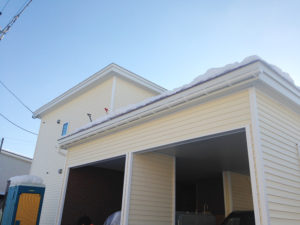 今回のご住宅は軒のあるタイプの無落雪屋根としました。