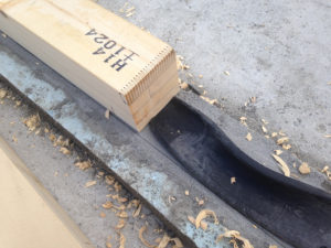 土台の下には、ゴムの気密材を敷き込み、家の隙間を最小限に抑えます。