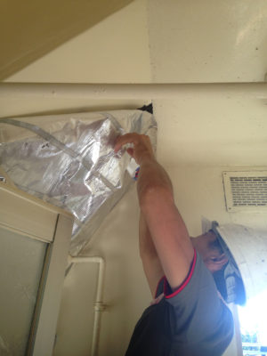 解体した所に水や湿気が入り込まないように、防水シートでしっかりと防水処理します。