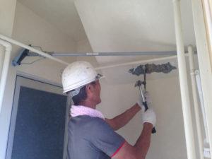 下地が見えてきました。寸法を確認し、なんとか既存の天井よりも