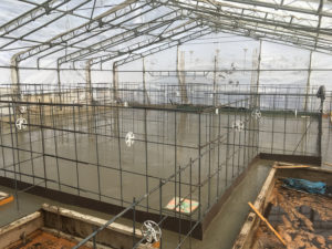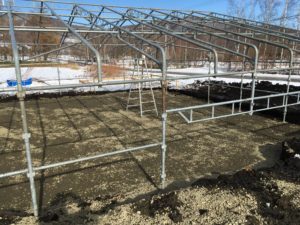 土間コン養生中。テントの中はぽかぽかです。