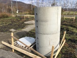 掘削した穴の中に、高さ約1.8mの土管を入れます。