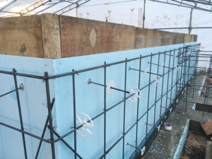 布基礎の外側と内側にも断熱材を打ち込みます。(外周部)