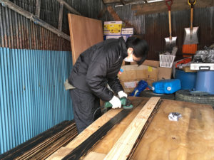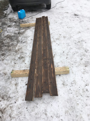 内部の壁に貼る為のカラマツを、今回は塗装ではなく、焼いて色付けする事に!