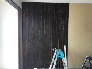 先日焼いたカラマツを家の中に張っています。