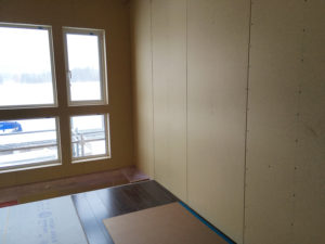 石膏ボード張りが進み、お部屋の広さがわかってきました。