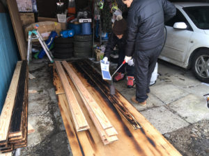 お施主様にお借りした道具のおかげで無事に焼カラマツを造ることが出来ました。