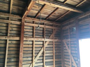 内壁はきれいに剥がされ、壁の中のグラスウールも撤去も完了。