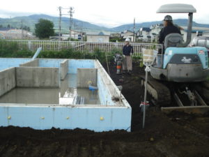 スカート断熱を敷込んだ後は埋め戻しを行います。