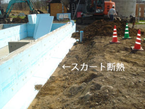 スカート断熱は、基礎断熱仕様の際に施す断熱で、