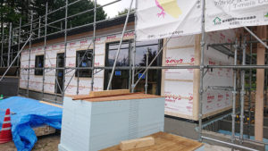 外部では、タイベックシート(透湿防水シート)が貼られ、
