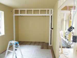 フローリングが張り終わってから建具枠を取り付けていきます。