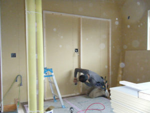 今回は壁を少し前に出して、アクセントクロスを貼ります。