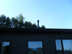 薪ストーブの煙突が取り付けられました。 新得町の風景にピッタリです。