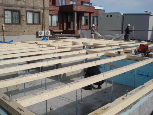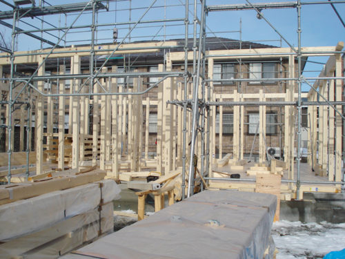 帯広市内で新築建築中のM様邸は躯体の建込みが始まりました。