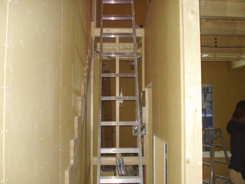 階段の造作が始まりました。壁に側板を取り付けていきます。