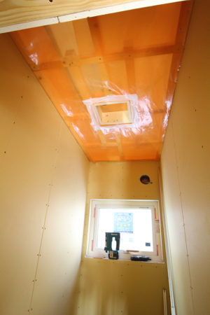 天井の気密が途切れないようにこの箱に気密シートを取り付けて