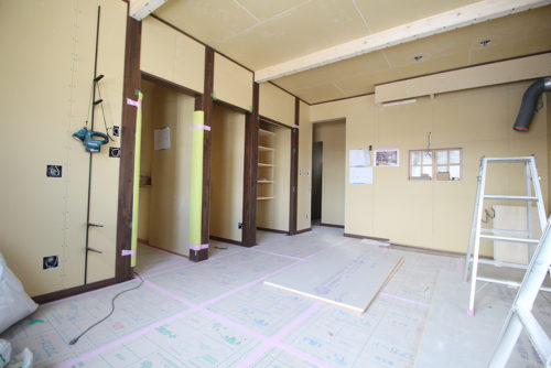 梁にも塗装を行い、古民家風の落ち着いた内装に仕上がる予定です。