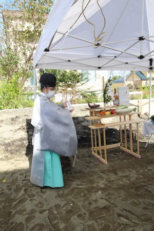 帯広市で、新築住宅工事が始まります。 昨日は秋晴れの中、地鎮祭を執り行いました。 お施主様のご祖父様が建築されたご住宅を解体し、新たに建築致します。 新しいご住宅もこれから先、永くご家族に愛される住宅となるように 心を込めて創らせて頂きたいと思います。