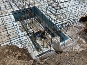 まずは便槽の底盤部分のコンクリートを打設します。