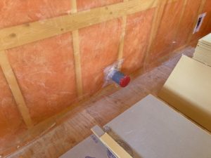 壁を貫通する配管周りには、しっかりとテーピングをして