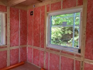 壁の断熱材も入れ終わり、気密シートが貼られていきます。