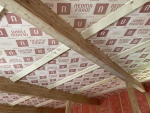 斜天部にはネオマフォーム66㎜を張り込み、