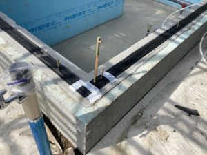 基礎と土台の間にゴムを敷き気密性を確保していきます。