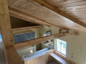 これから、天井にカラマツの羽目板を貼っていきます。