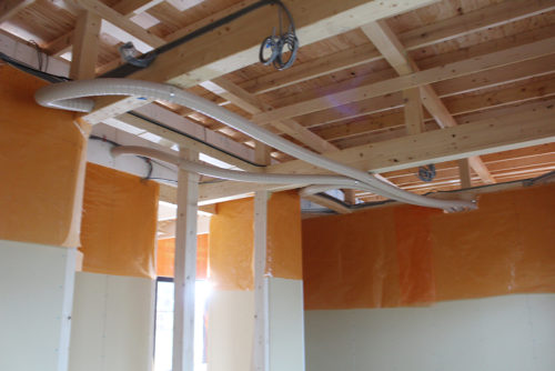 上を見てみるとあちこちに長ーい配管がありますがこれは、換気の配管です。