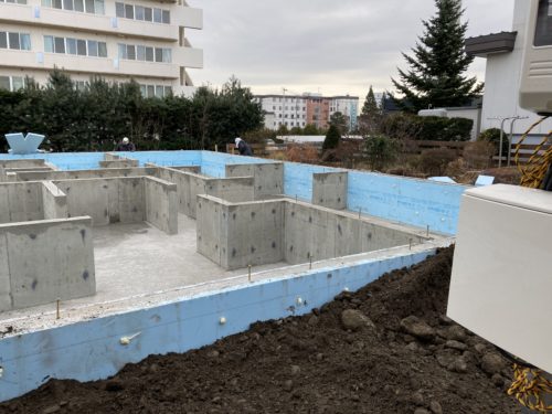 基礎の周りにぐるりと断熱材を敷き込み、