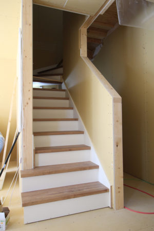 大工さん、階段造作中。