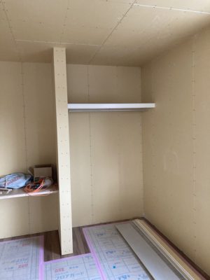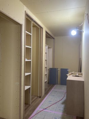 石膏ボード張りが進むとお部屋の大きさがわかってくるので