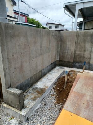 音更町の新築工事では、塀の基礎工事が終了しました。 枠が外れて現れた立派な基礎です☆