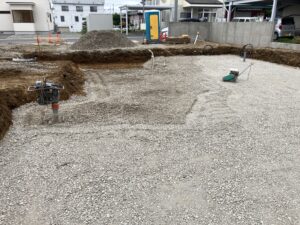 通常の基礎は布基礎が入る部分にのみ砂利と