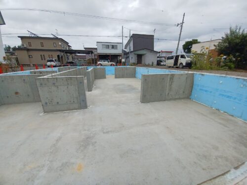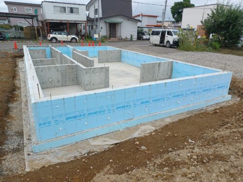 基礎の外周部は外側と内側に断熱材を打ち込んでいます…