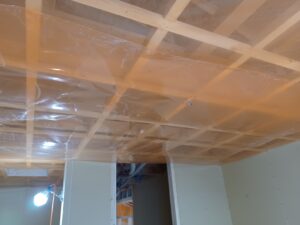 床は吹き上げた天井部分の壁や天井の施工を行う為の