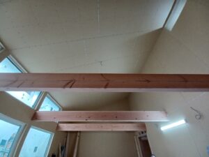 カラマツの梁がポイントになっています