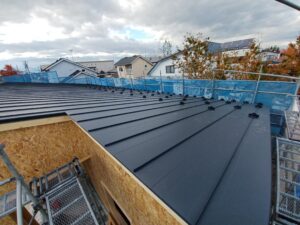 屋根の合板貼りが終了して