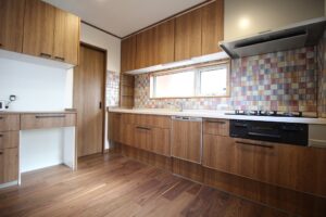こだわりのキッチン前のタイルや