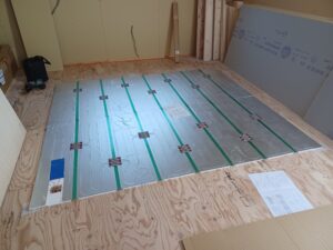 今回のご住宅はお客様のご希望でLDKに床暖房のパネルを設置しています。