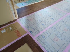 床の仕上げのフロアー貼りも始まりました。