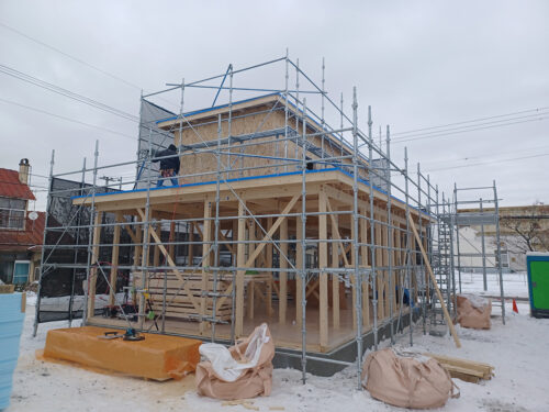 帯広市で建築中のO・Y様邸は大工工事が進んでおります。