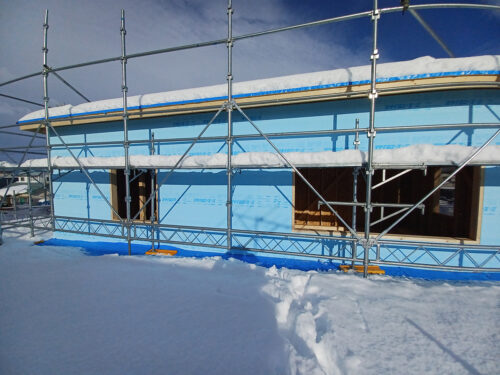 12/27~付加断熱の上に透湿防水シートを貼りました。